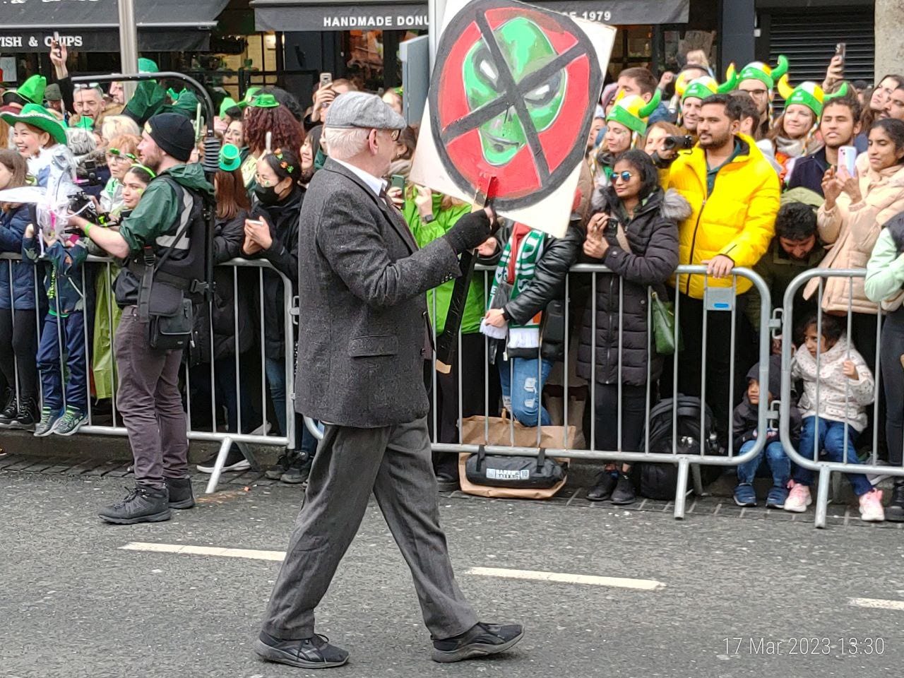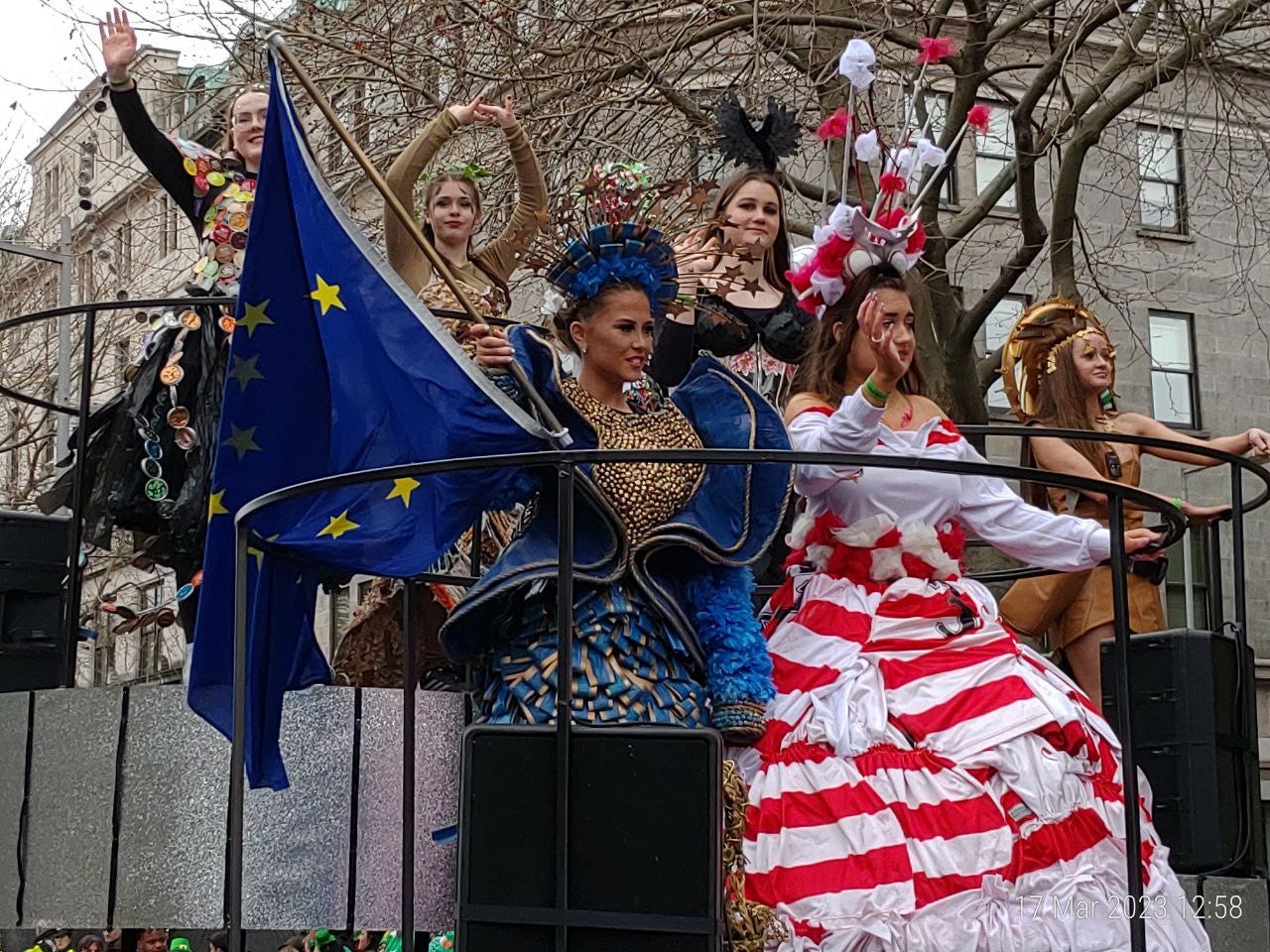Multe steaguri fara legatura cu Sf. Patrick si urmasii lui. De exemplu al Ucrainei sau al activistilor LGBT. N-au cum sa rateze ocazia sa obtina un pic de awareness pe gratis. Sau de plutasi pe Mediterana.