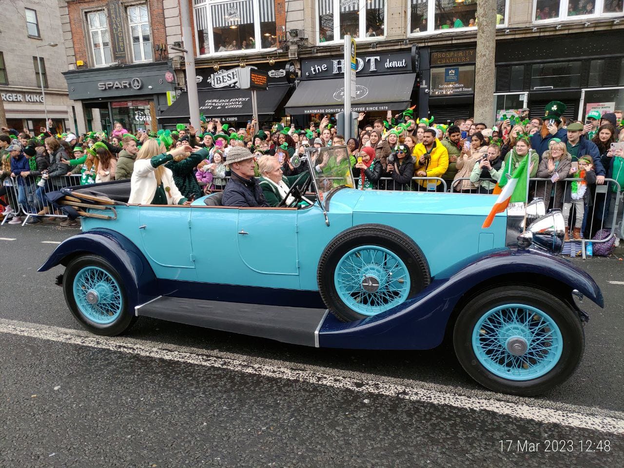 Parada programata sa inceapa la 12.00 dupa ora Irlandei ideale. A inceput pe la 12.20 dupa ora Irlandei reale.