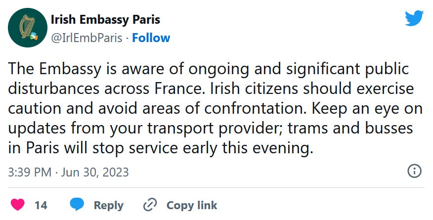 Ministerul de Externe irlandez a emis un avertisment pentru cei care calatoresc in Franta.