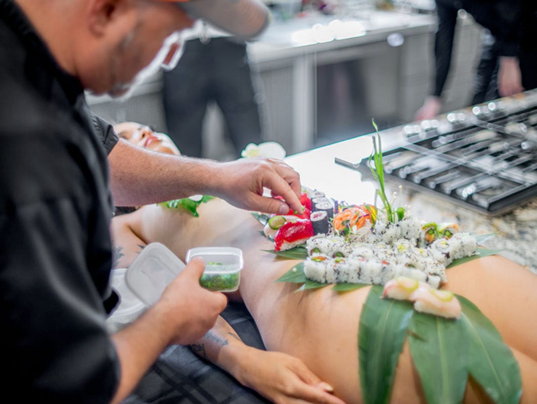Atata doar ca “aristologia“ nu prea are noroc nici aici, cuvantul ales de artistii japonezi este “nyotaimori“. Cu variantele vestice de “body sushi” sau “naked sushi”.