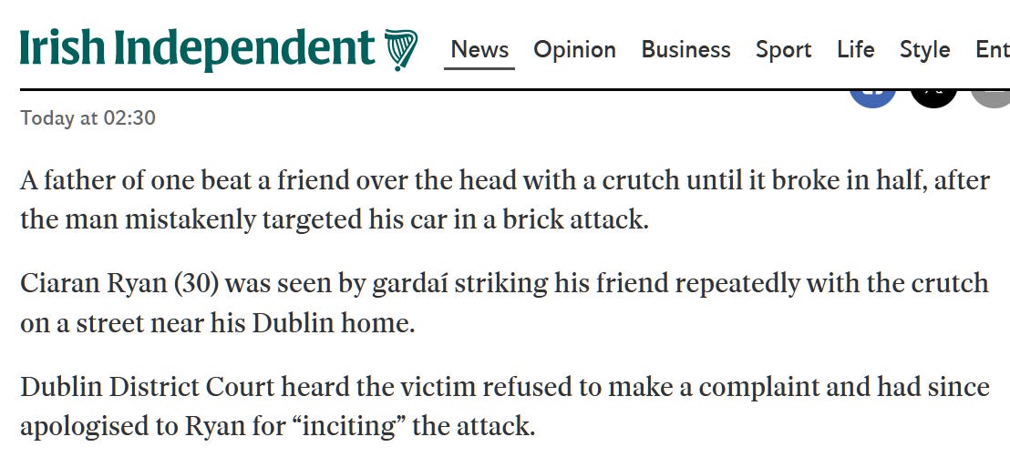 Insa nu doar stirile politice sunt plicticoase. Si restul stirilor sunt cu adevarat deprimante. De exemplu azi dimineata am aruncat o privire rapida peste titlurile presei mainstream irlandeze: un tata si-a batut un prieten cu carja in cap pana cand a rupt-o in doua pentru ca prietenul l-a atacat din greseala cu caramizi. Serios, asta e stire serioasa dintr-un ziar serios. Nu e chiar genul meu de stire. Probabil ca nici al vostru.