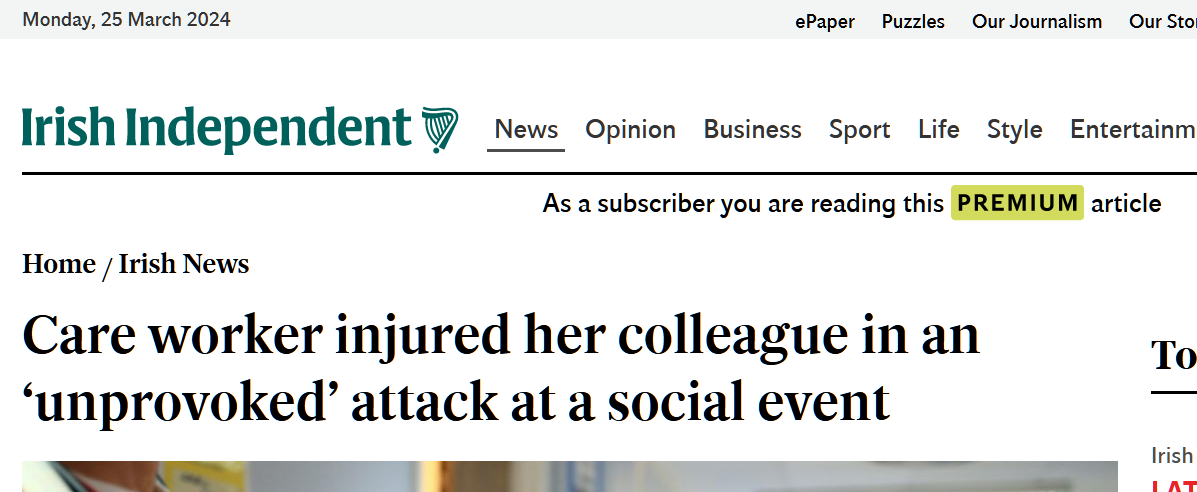 Sau una despre un ingrijitor medical care si-a atacat fara motiv un coleg la un eveniment. Te astepti de la un ingrijitor sa fie bland si bun. Poate ca si este, dar nu cu colegii.
