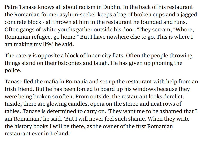 Deschis in 1996, intr-o perioada in care majoritatea romanilor ajungeau in Irlanda doar ca solicitanti de azil si se bucurau de trista faima de a fi hoti si cersetori, restaurantul a fost pentru o lunga perioada unul din locurile de intalnire al romanilor din zona. Si bucurandu-se de “simpatia” pe masura a localnicilor. 😊