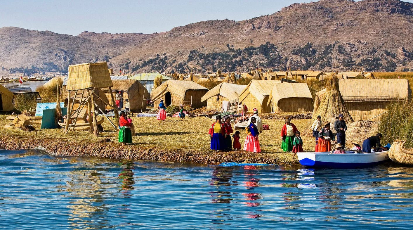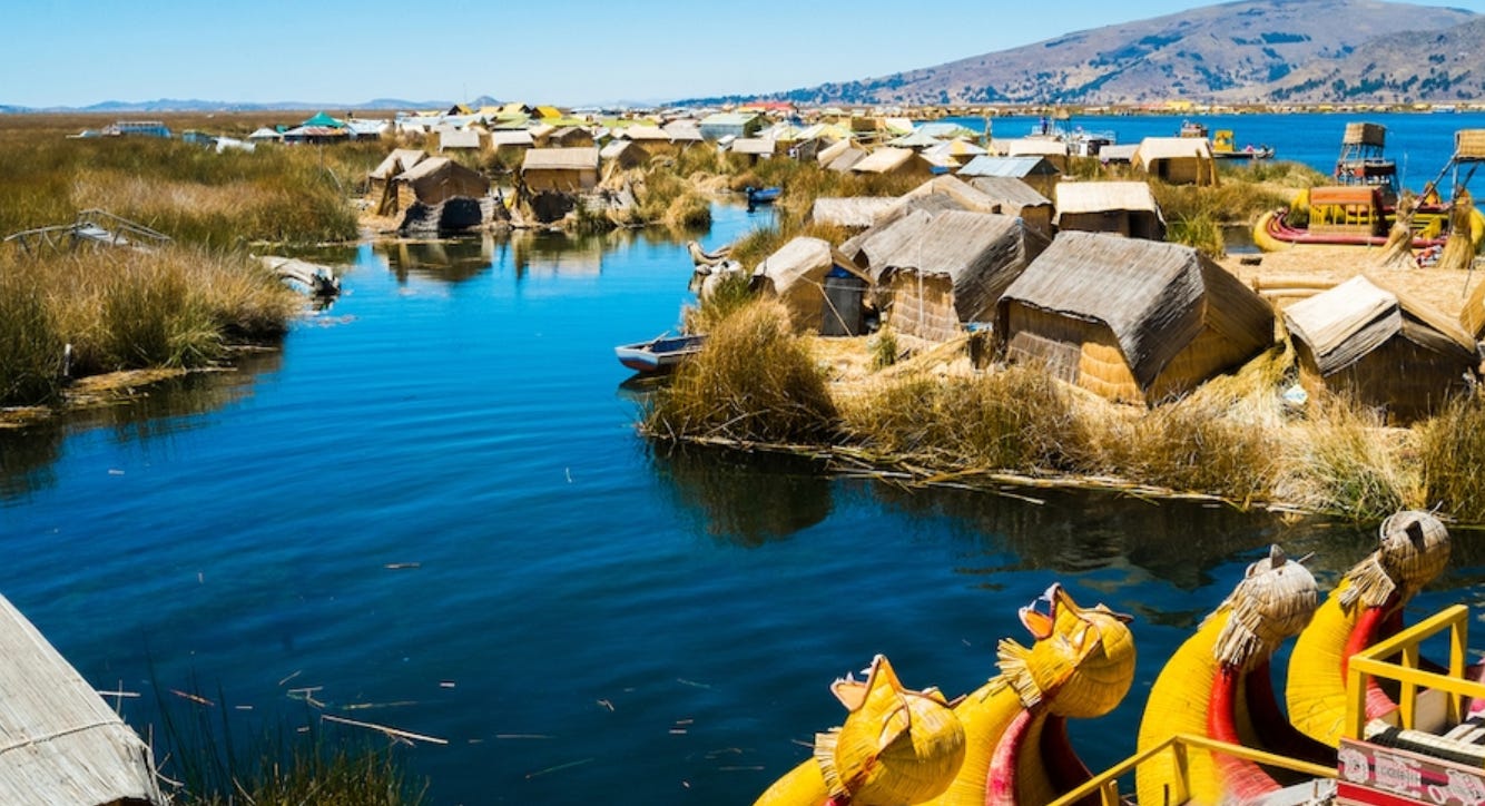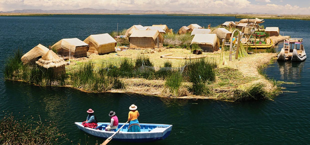 Undeva la granita dintre Bolivia si Peru, pe cel mai inalt lac din lume traieste o comunitate care are o particularitate unica: membrii ei traiesc pe insule artificiale construite de ei insisi. Niste insule plutitoare.