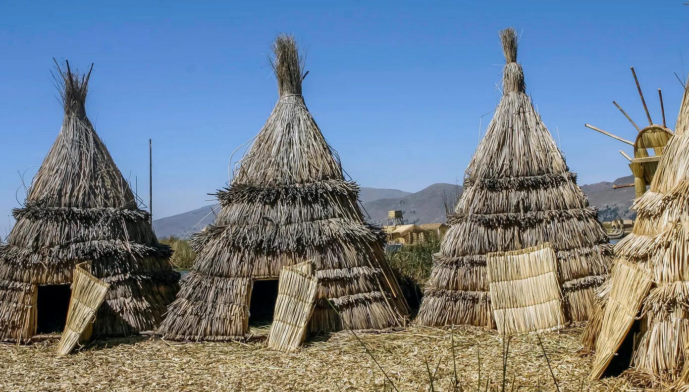 Indienii Uros cand au fost amenintati cu distrugerea nu au avut unde sa se duca, nu exista nicio insula salvatoare nelocuita. Iar daca ar fi gasit-o probabil ca la un moment dat ar fi venit altii sa le-o ia. Asa ca au fost nevoiti sa isi construiasca ceea ce cautau. Din ceea ce aveau la indemana, trestia totora. Iar apoi sa intretina continuu ceea ce obtinusera.