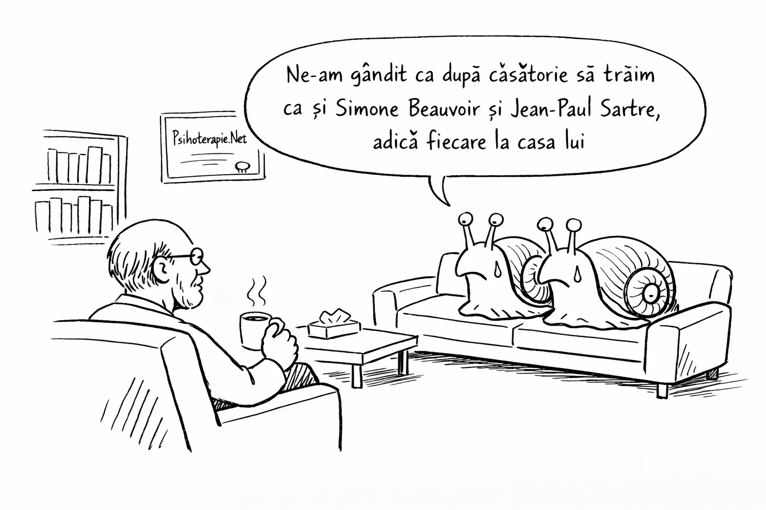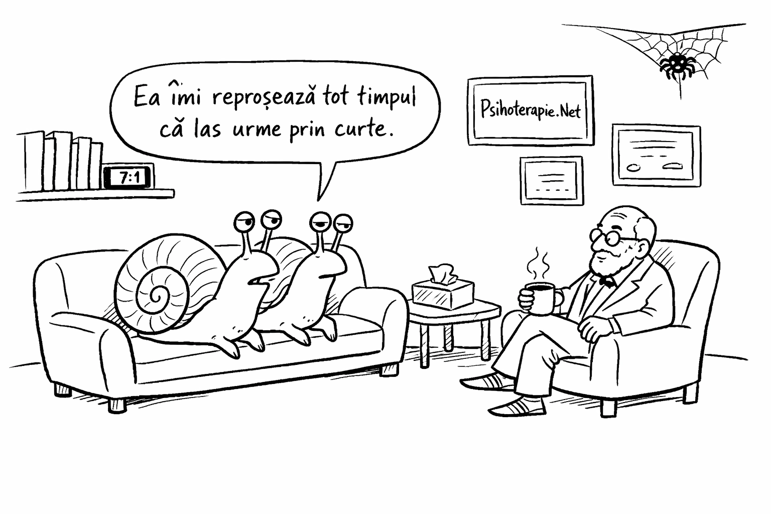 Am și una cu terapie de cuplu cu melci, personajele tale favorite. 😊
