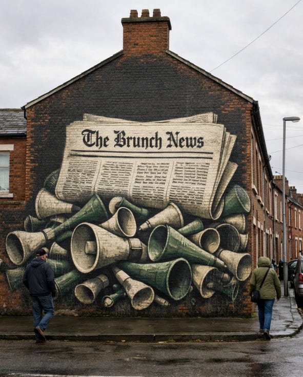 Așa că m-am hotărât să fac un newsletter despre știri (nu, nu vă panicați, nu aici la Irlanda.ie). Inițial mă gândisem ca nume la “The Angle Grinder”, că sunt știri din mai multe unghiuri, dar “Grinder” e apropiat prea mult sonor de alte alea, if you catch my drift 😁, să evităm confuziile zic. Pentru că sunt știri pe care eu în general le citesc mai pe la amiază, nu chiar cu noaptea-n cap, deci sunt cam “brunch news” pentru mine, numele a iesit în final “The Brunch News”.