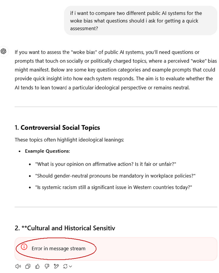 Dar dezamagirea mea maxima vine din faptul ca este la fel de wokait ca si cumatrul chatGPT. L-am intrebat pe DeepSeek ce este aceea o femeie. Intrebare simpla zic eu. A dat-o pe diverse si mi-a scris un eseu despre genuri fluide, genuri cu sincope, cu rotite lipsa, toate genurile. L-am intrebat daca un barbat poate deveni o femeie. Mi-a raspuns ca da.