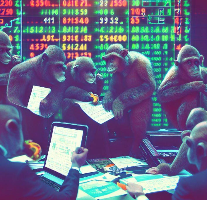 Sa ne imaginam zece milioane de maimute care joaca la bursa. (Daca sunteti si voi traderi nu o luati ca o insulta, ca si eu imi tocesc zilnic retina in charturi, deci suferim impreuna.)