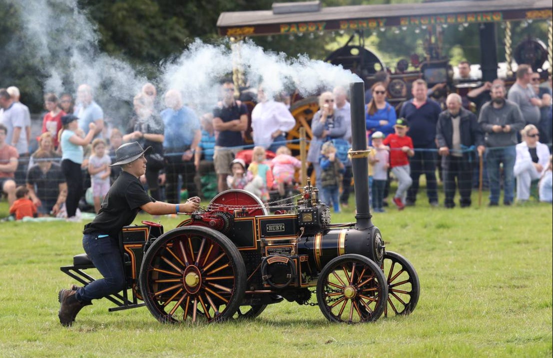 in Stradbally, co. Laois a avut loc “Raliul National al Aburului”. Un eveniment pentru pasionatii de locomotive si tractoare pe abur ca sa le vada in desfasurare. Stiati ca au existat/exista inca tractoare pe abur? Nu stiati, nimic nu stiti. 😊