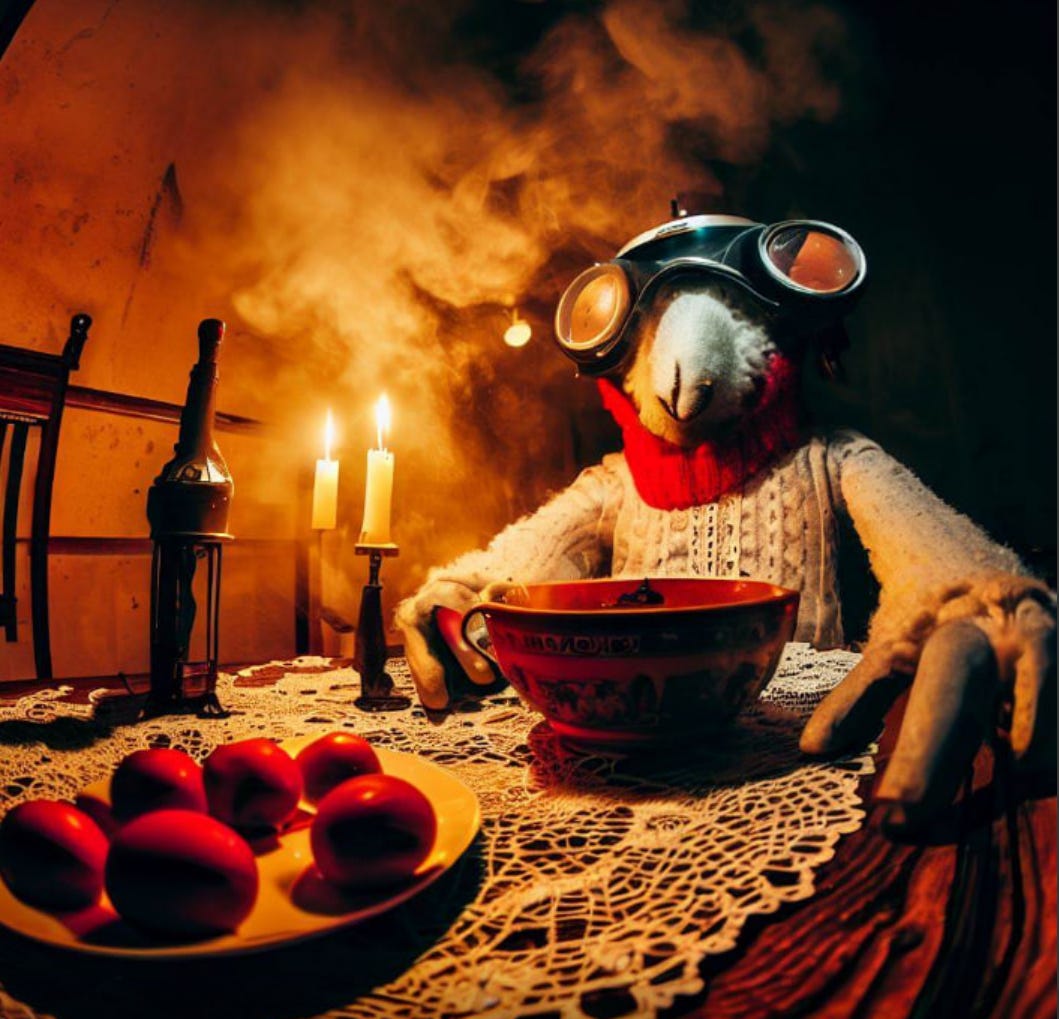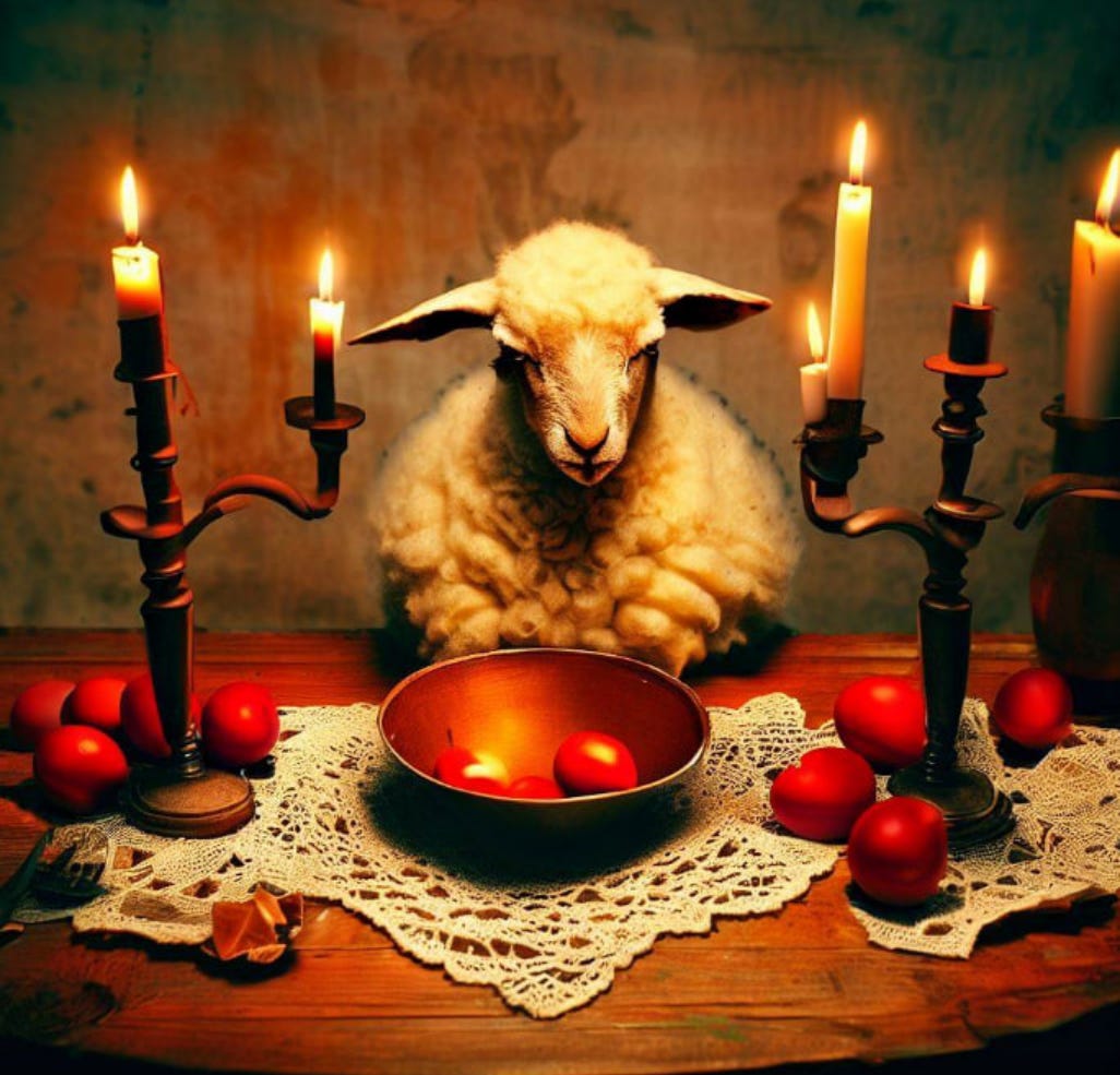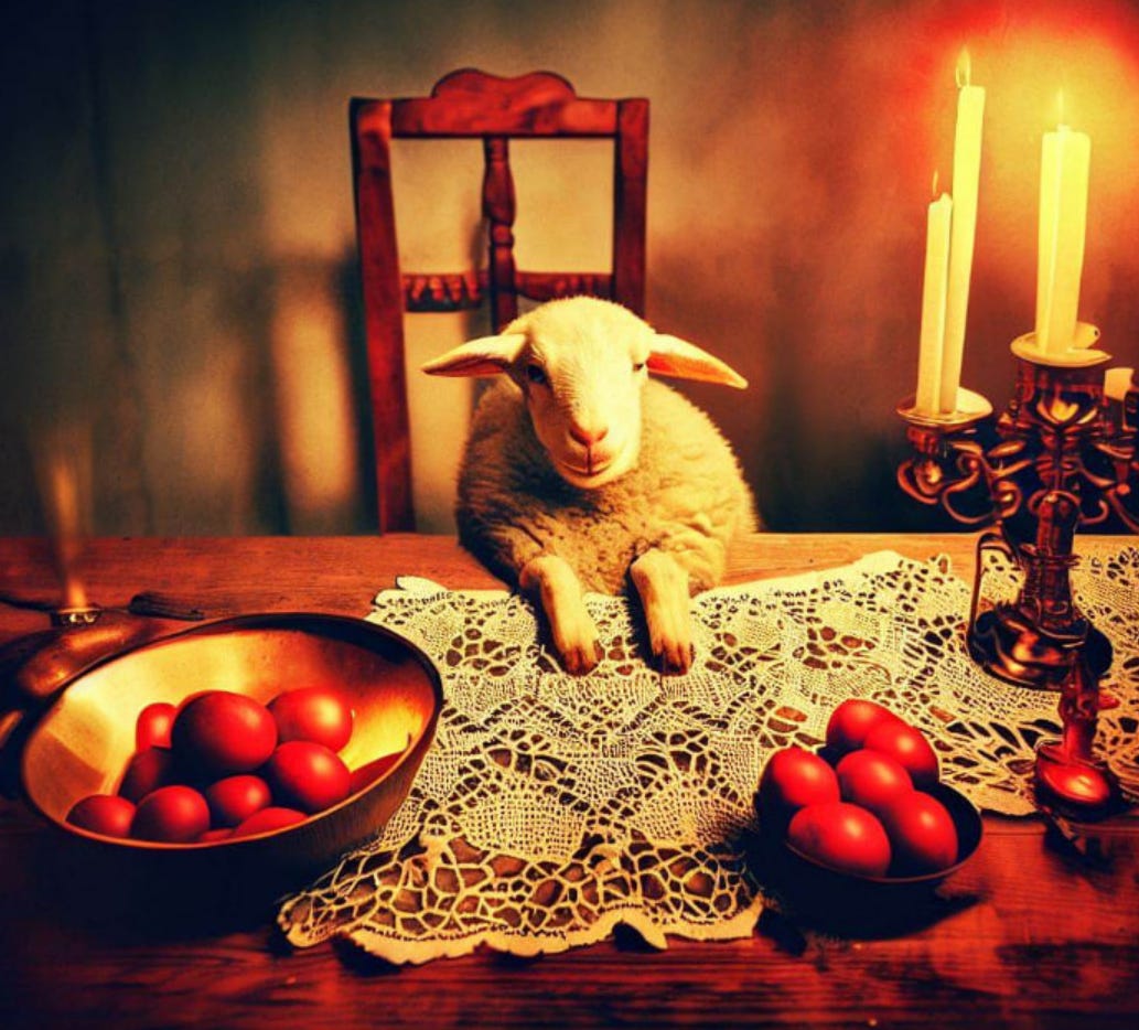 Cautam impreuna cu prietenul meu robotul o ilustratie mai potrivita pentru postul de Paste. Adica postul de pe newsletter, editia de Paste. In mod evident robotul m-a inteles gresit cand i-am zis ca as vrea o masa traditionala de Paste cu oua rosii. Am tot incercat sa ii explic varianta mea de “Glorie Mielului“, nu ne-am inteles deloc.