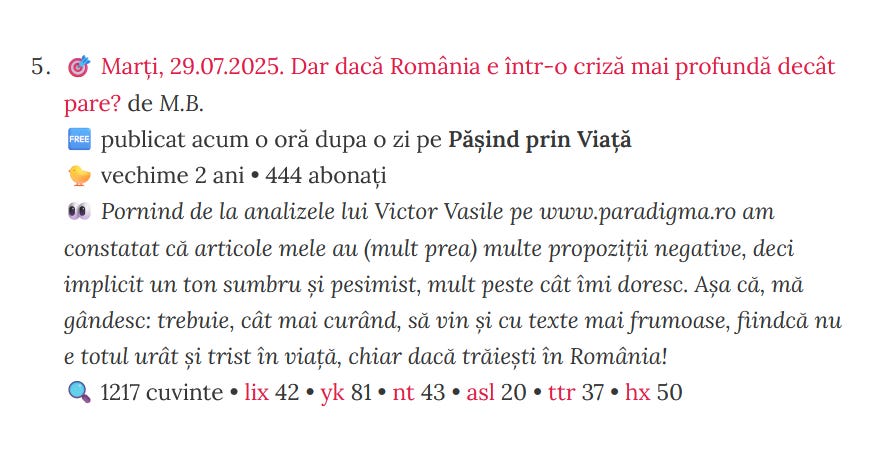 Cu aceasta cam lunga introducere voiam sa va spun ca incepand de ieri revista presei substackurilor romanesti de la Paradigma monitorizeaza si hapaxurile din substackurile romanesti cu o formula simpla.