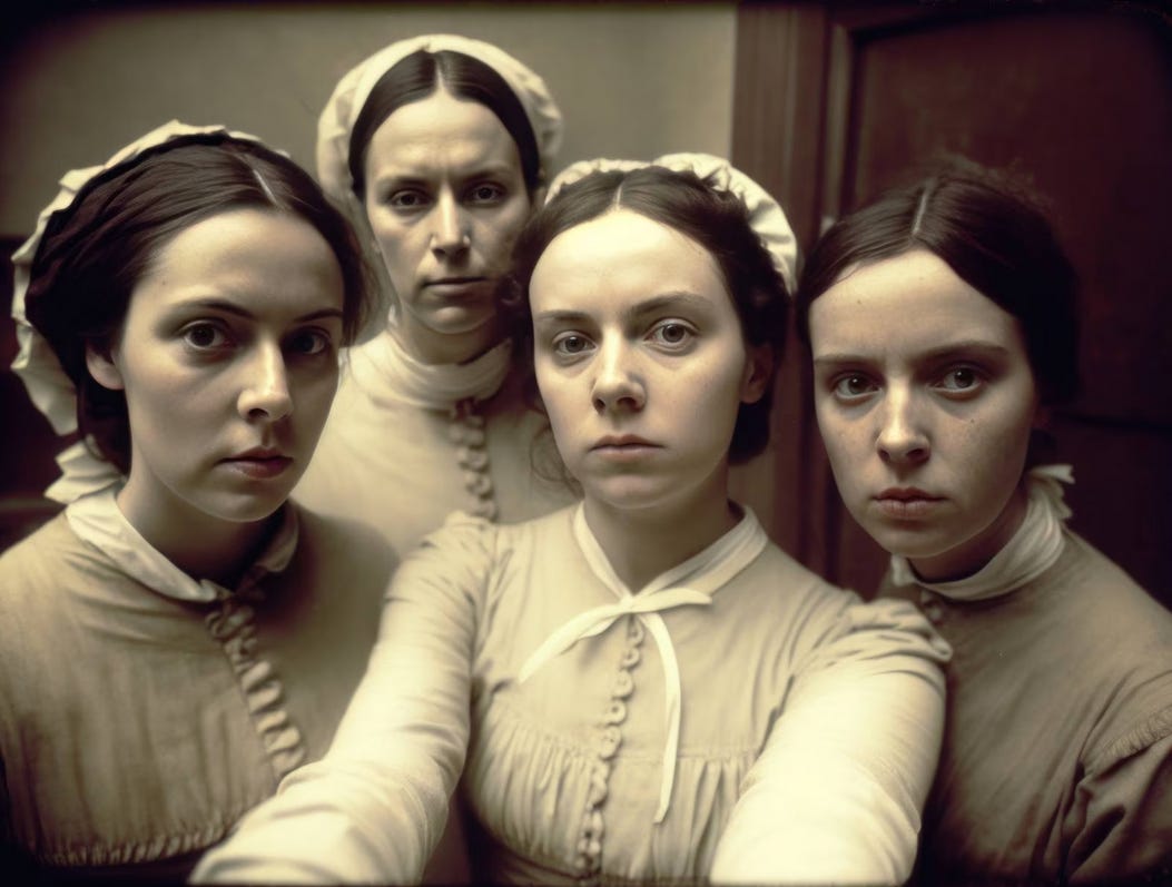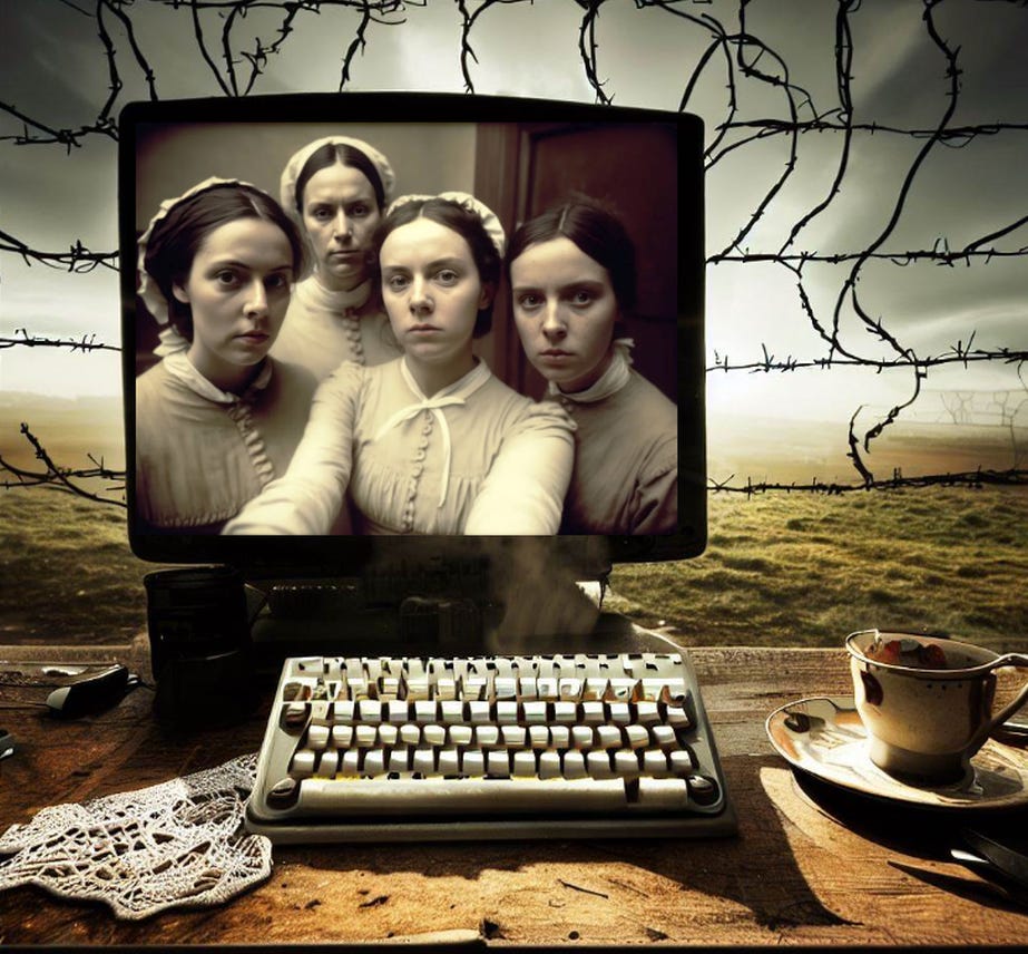 O fotografie (tehnic vorbind o promptografie) generata de AI agita spiritele in spatiul public irlandez. Fotografia sugereaza atmosfera istorica a “magdalenelor” (mame nemaritate ajutate de Biserica Catolica, adeseori victime ale abuzurilor bisericii) care isi fac un selfie.