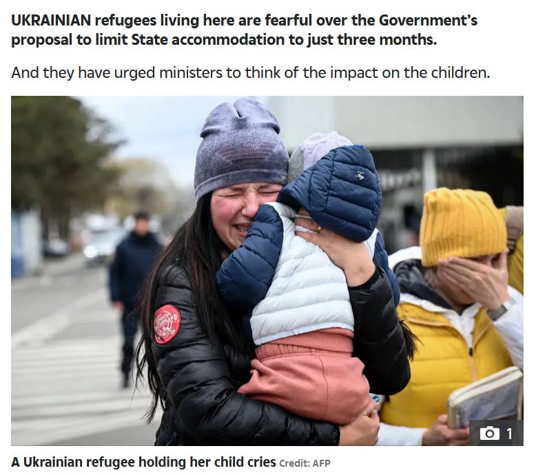 migrantii ucrainieni din Irlanda sunt ingrijorati de planurile guvernului de a le limita plata locuintelor sociale la trei luni, dupa care ar trebui sa isi gaseasca o locuinta cu chirie ca toata lumea. Iar reactia a fost previzibila, un fel de “dar la copiii nostri nu va ganditi?”
