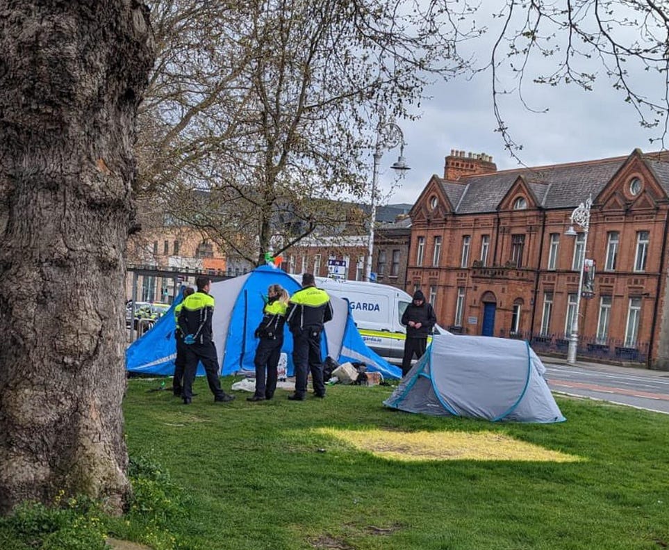 Ocazie cu care Garda a lichidat si micul camping ilegal de la intrarea in parcul Phoenix (cel din poza de mai sus), prezent de luni de zile acolo. Poate ca Biden ar trebui sa vina mai des in Irlanda.