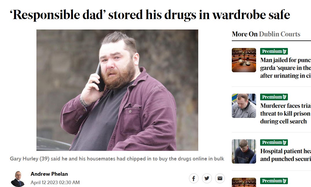 Cliseul irlandezului neglijent este aproape universal dar exista multe situatii care demonteaza acest cliseu. Un irlandez demonstreaza ca este un tata responsabil si isi tinea cocaina si pastilele de ecsasy intr-un seif. Nu ca cei care le tin la indemana copiilor. Chapeau!