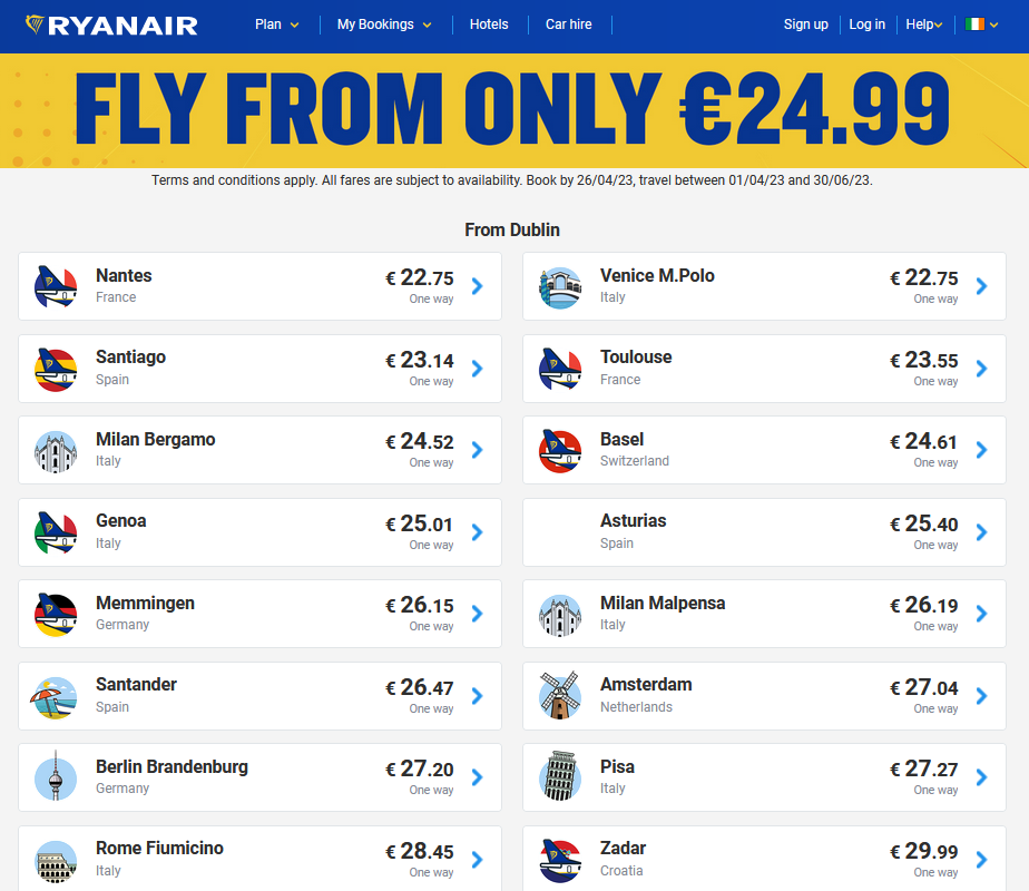 Si inca o veste buna pentru amatorii de chilipiruri, Ryanair are un flash-sale pentru calatorii in perioada aprilie-mai-iunie. Daca vreti sa vedeti Venetia cu doar 22 eur sau Pisa cu 27 e o ocazie buna.