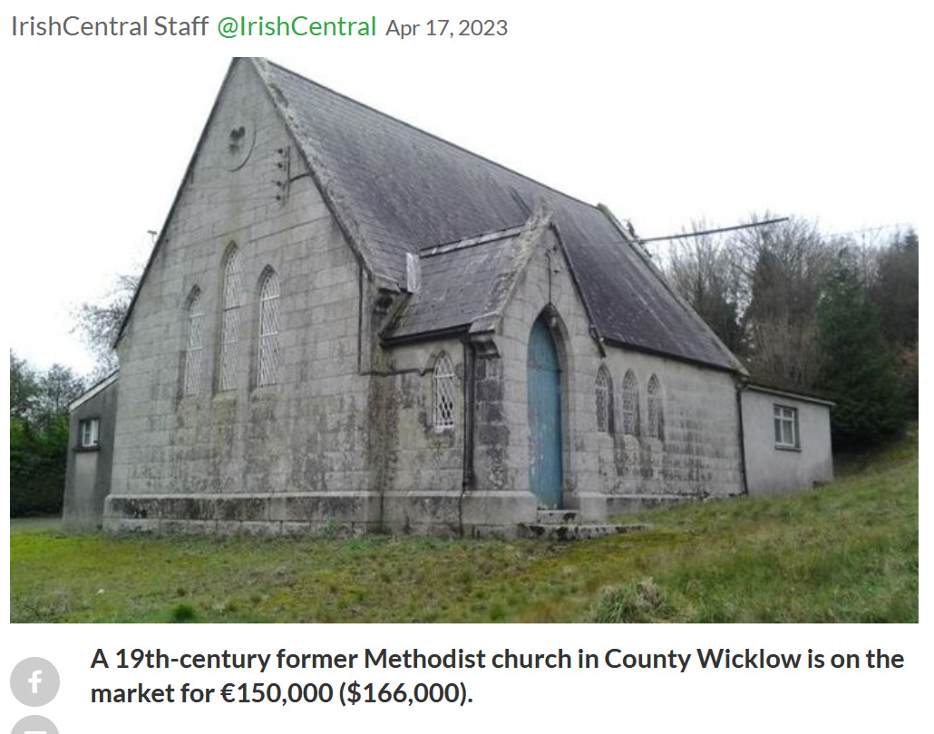 Fara nicio legatura cu cautatul jumatatii, daca ati avut vreodata vreo fantezie cu biserici sa stiti ca in Irlanda tocmai este o biserica de vanzare. Pretul nu e rau deloc iar cladirea din secolul XIX e in stare excelenta.