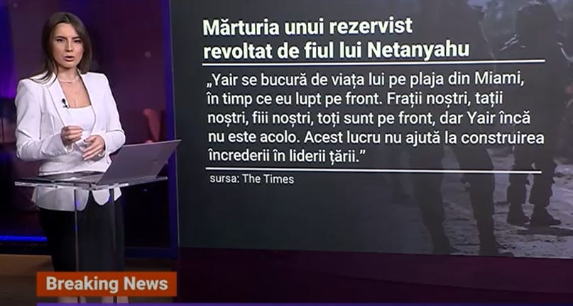 Pana acum Yair Netanyahu, fiul rezervist al lui Bibi si-a aparat tara doar de pe Instagram, unde are multi urmaritori, cu incurajari catre soldati, cu cuvinte grele pentru adversari, a facut tot ce depindea de el. Apararea tarii vine in multe forme si arome. Uneori poti sa o aperi mai bine cu un mojito in mana decat cu o arma. In plus tinerii de calitate trebuie protejati de pericolele pe care le aduce razboiul, ca doar pe ei ne bazam pentru reconstructia tarii cand totul se termina.
