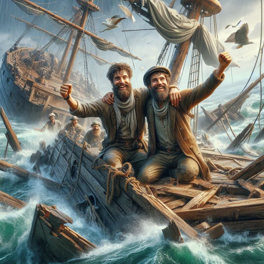Insa spre oroarea lor, dupa ce capitanul a obtinut lista cu toti marinarii fosti naufragiati, i-a chemat pe acestia si i-a angajat pe toti, pe ei primii. Apoi i-a pus pe fostii marinari naufragiati sa faca ei mai departe angajarile si sa evalueze cat de bine pregatiti sunt ceilalti marinari.