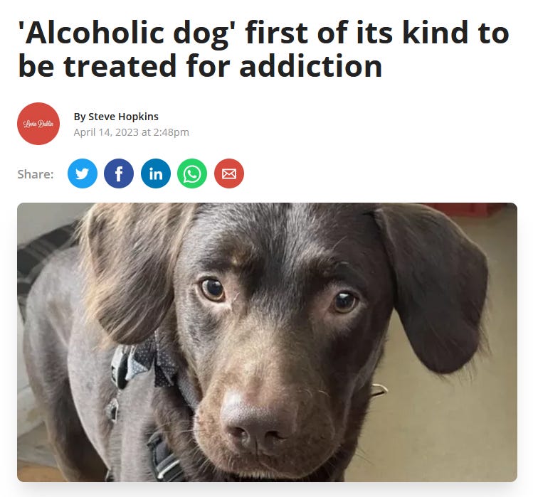 Un labrador de doi ani a ajuns la spital cu simptome grave de sevraj la alcool. Probabil ca nu este primul caine alcoolic din Irlanda dar se pare ca este primul care primeste ajutor medical sa scape de alcoolism.