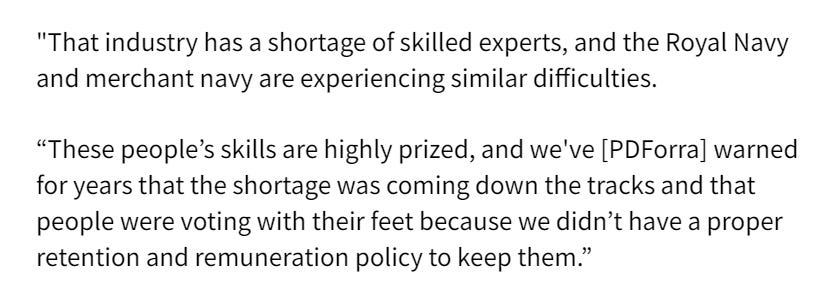 Irlanda cauta sa angajeze specialisti pentru a-si tine flota pe linia de plutire. Pun intended. Se pare ca lipsa grava de specialisti in domeniul naval nu e una exclusiv irlandeza, si UK se confrunta cu aceeasi situatie. Asa ca daca va ganditi sa va calificati pentru un job de viitor, pe care nu are cum sa vi-l fure chatGPT, de acum stiti.