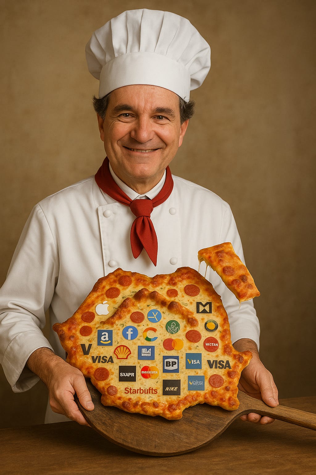 Ciugulita pe deasupra, falsificata in aluatul profund. Meşter pizzaiolo/ Mândră e pizza. Din lirica celuilalt Nea Nicu. Fugem, ca vin scumpirile.