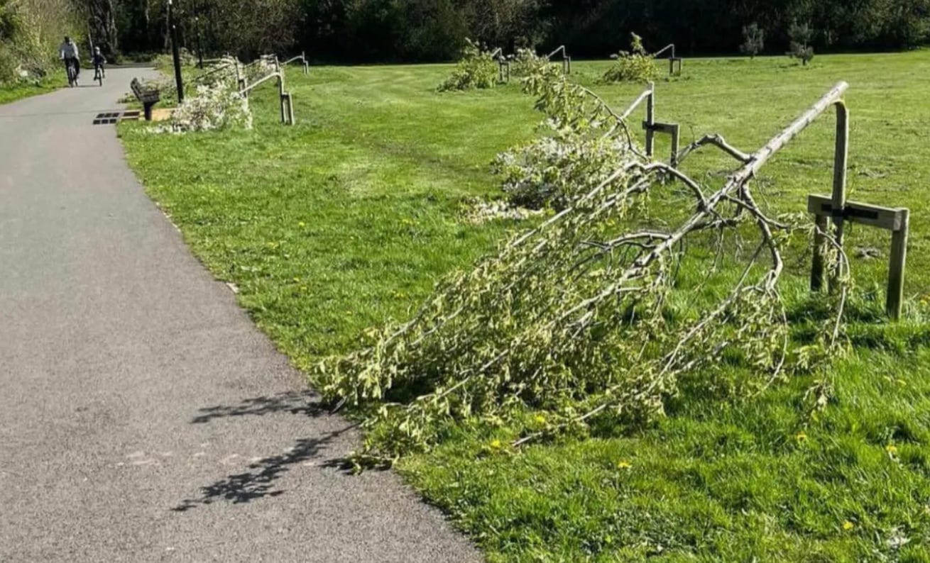 un parc din sudul Dublinului a fost tinta unui act de vandalism in care au fost taiati 75 de copaci intr-o singura noapte. Cineva nu iubeste parcurile. Sau copacii. Sau oamenii in general.