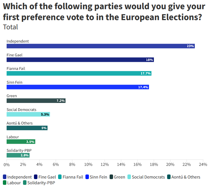 pentru alegerile europarlamentare in Irlanda cei mai populari raman candidatii independenti. Un semnal destul de clar (si neplacut) pentru partide ca nu se mai bucura de simpatia alegatorilor.