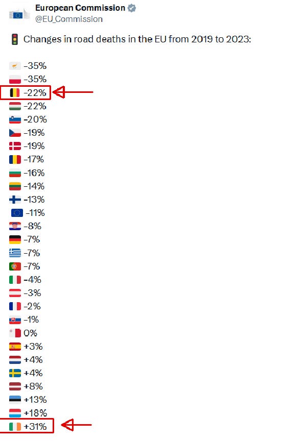 Aia cu mortii pe sosele trebuie analizata in cifre absolute. Pentru ca, daca in Irlanda mureau 3 oameni si acum mor 4, tot crestere de 30+% se cheama. :)))