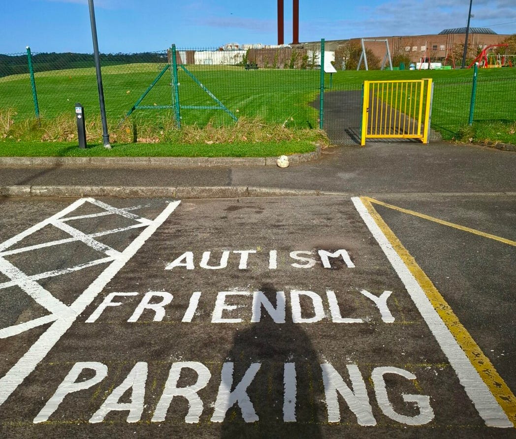 in Donegal a aparut prima parcare cu locuri “autism-friendly“. Locuri de parcare. Adica sunt la fel ca toate celelalte, doar ca pentru autisti. 😊