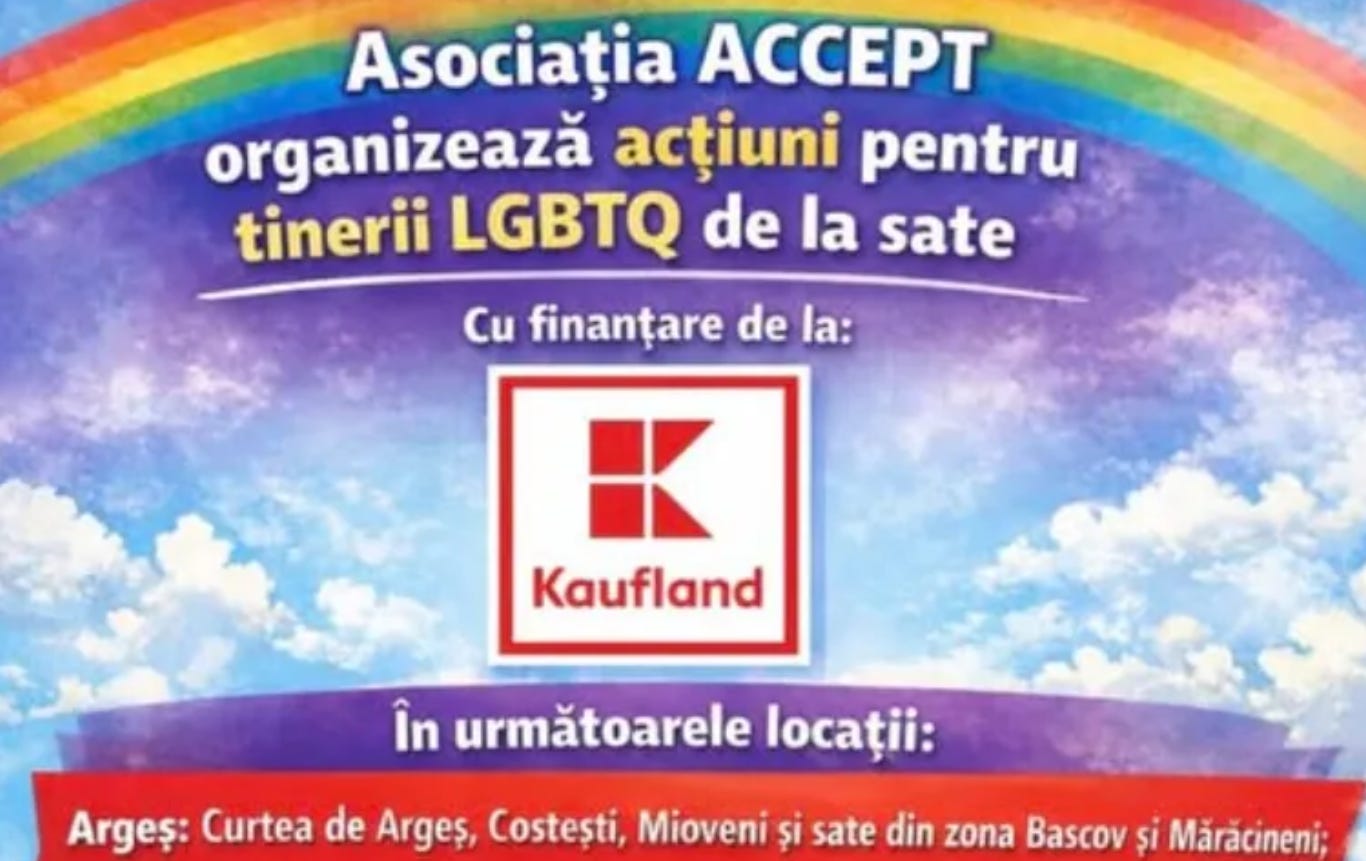 Cam cum face acum Kaufland când sponsorizeaza festivalul adolescentilor homo-confuzi de prin satele României. Adică dacă tot se joacă, măcar să se joace cu însemnele Famigliei. Kaufland România devine astfel un fel de “Insula Iubirii” a lui Epstein, varianta homoerotică si gratuită.