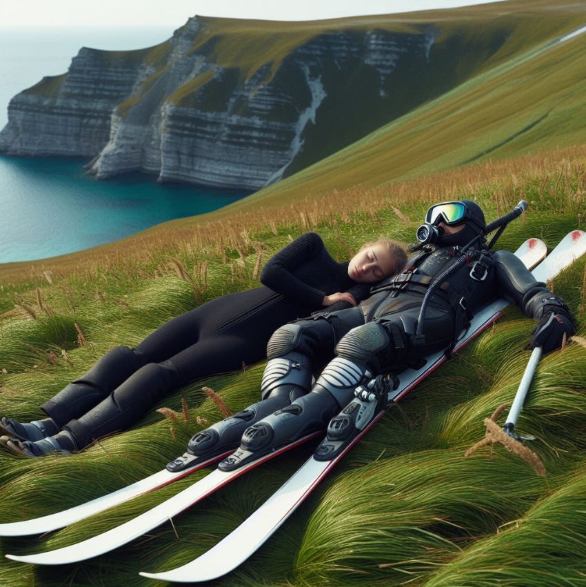 In timp ce comparam cele doua variante, scafandru vs. schior (bomfaierul fiind exclus din start, fiftysomething, remember?) ne-am dat seama ca discutia noastra de mic dejun e foarte diferita de discutiile noastre obisnuite. Noi in general discutam despre chestii mult mai simple, din astea pe pace, pe prietenie, despre cati bani a mai cersit Zelenski si de la cine, ce ne mai coace Ursula. Nici pomeneala de cadavre & shit.