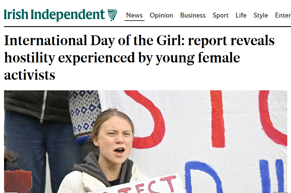 Ziua Internationala a Fetelor. O excelenta ocazie pentru toti wokistii acestei lumi sa profite si sa o contabilizeze in folos propriu. De ce sa faci ceva bun in spiritul sarbatorii pentru niste fete, de exemplu sa le dai cadou niste bilete la teatru de ziua lor cand poti sa iti vinzi propriul activism si te vaicaresti despre ostilitatea cu care se confrunta tinerele activiste de mediu?